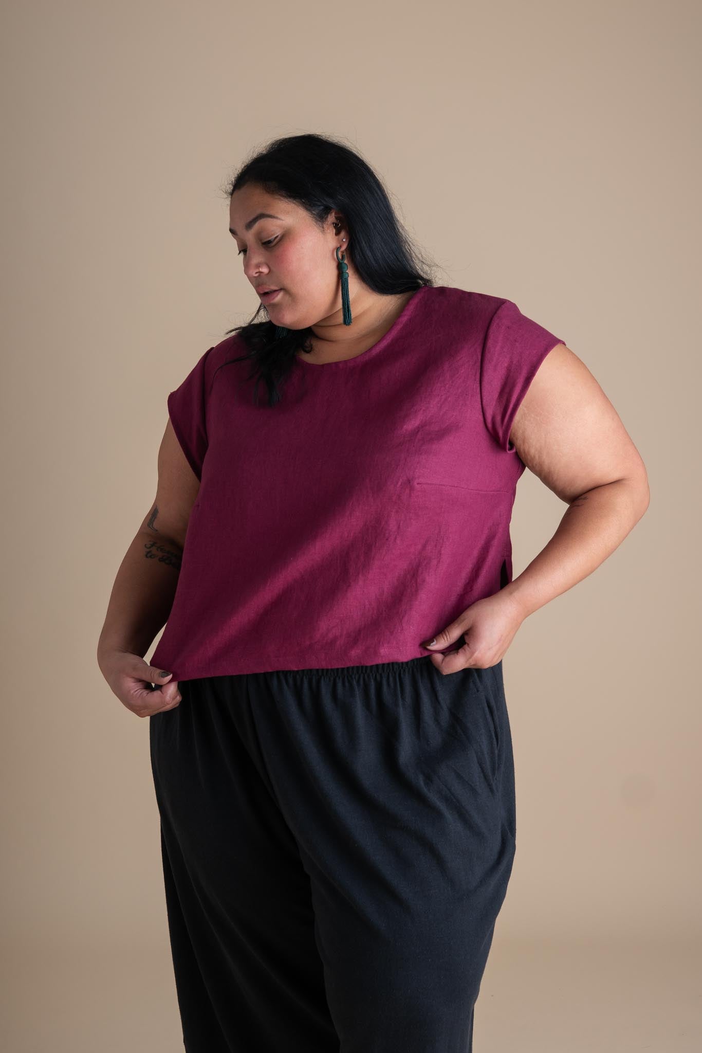 Back in early November, we had the pleasure of inviting Artist Kayla Powers into our studio while she was in West Michigan for her residency at Saugatuck Center for the Arts. We have admired her work from afar for many years, and were more than happy to donate some of our scraps for her classes in the area. We also gifted her a Ranch Jumpsuit & Painter Top in Pebble to dye as she pleases! More on that coming soon.