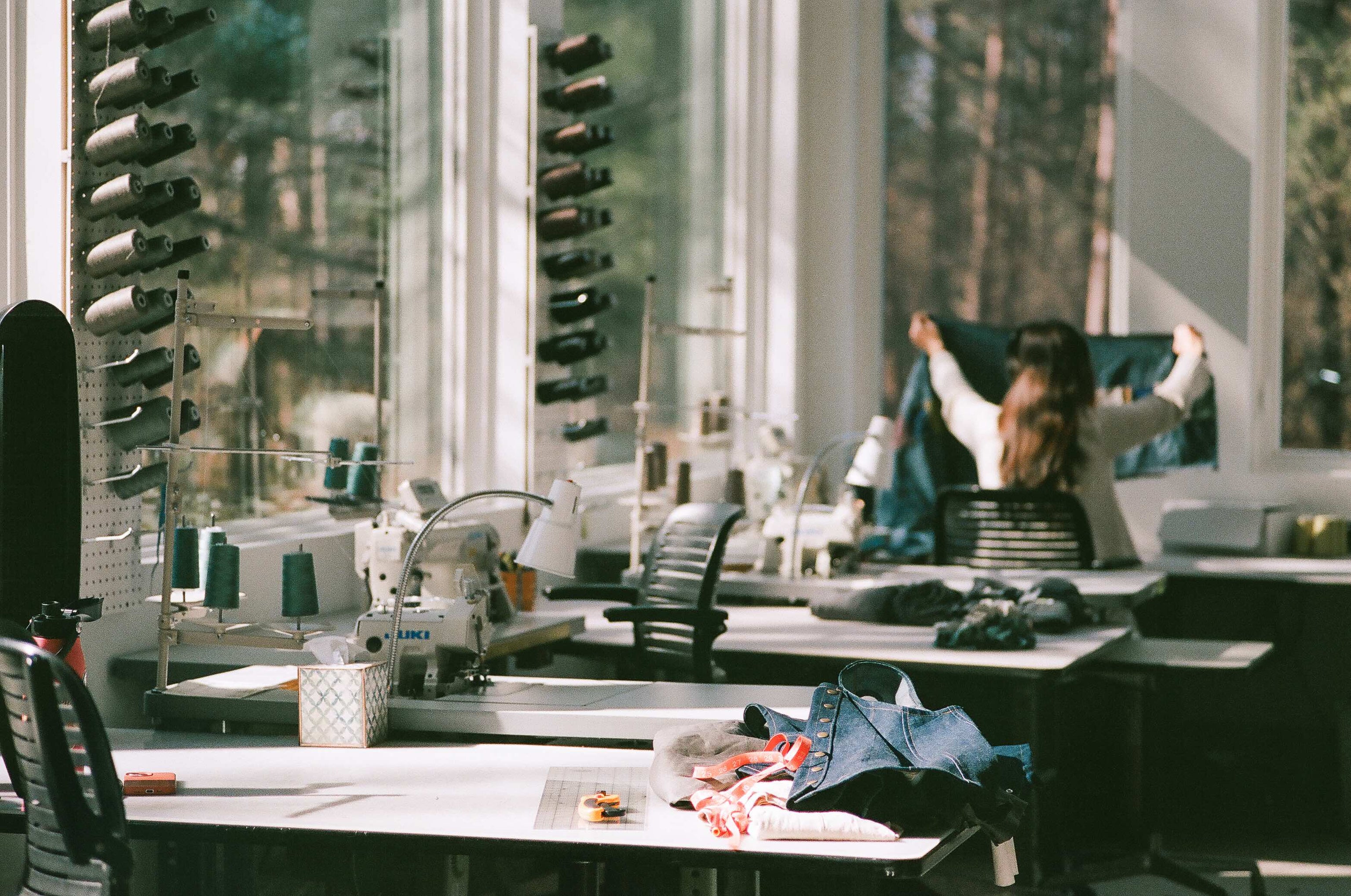 Our studio is located in Belmont, Michigan. It was built in 2015 with partly salvaged and reclaimed materials. Here, a team of talented individuals cut, sew, wash and dye, tag, iron, and ship our unique pieces. We built the studio to fit exactly what our company needed: a screen printing lab, a dye room, and unique shelves and tables for every tool to fit and function just the way it's supposed to.